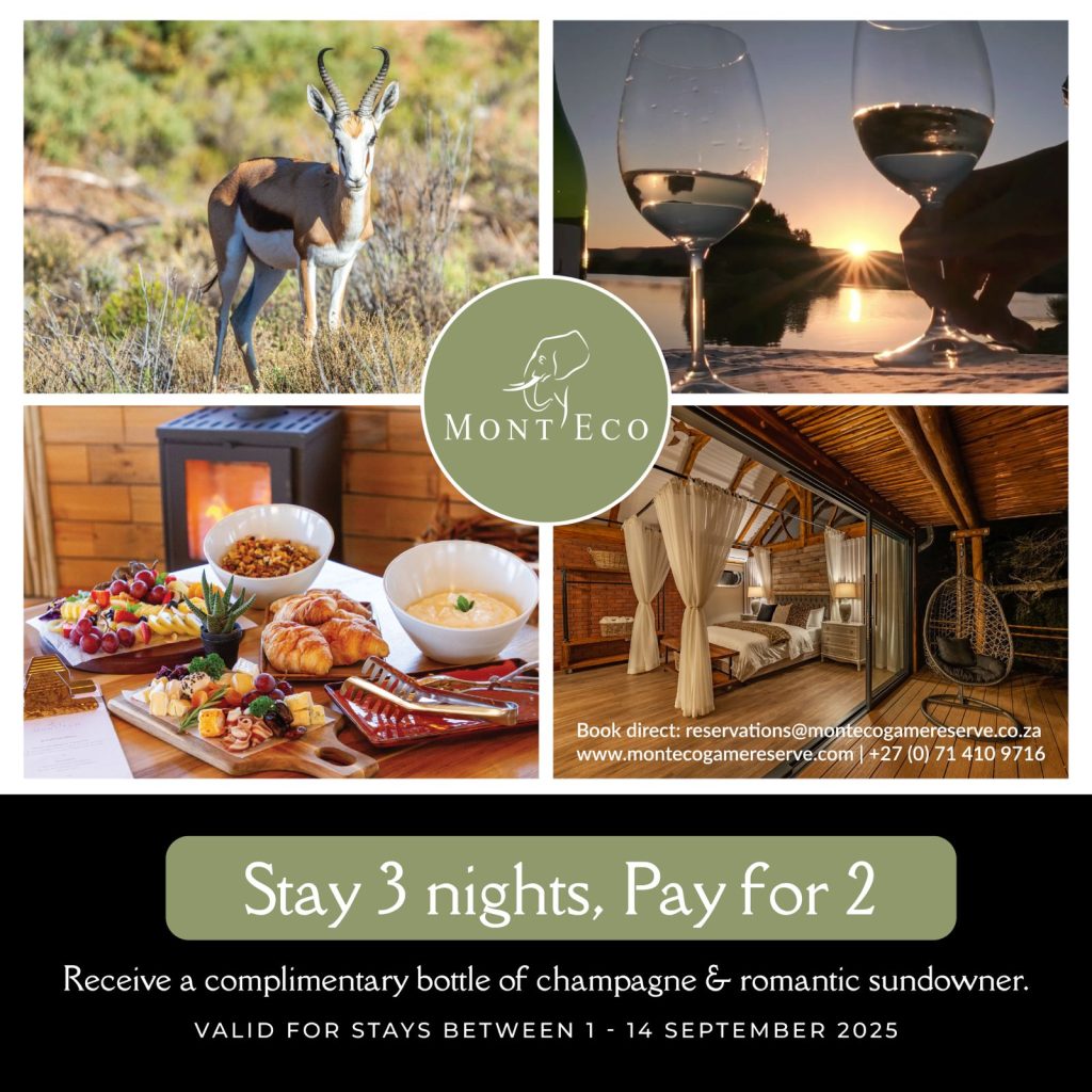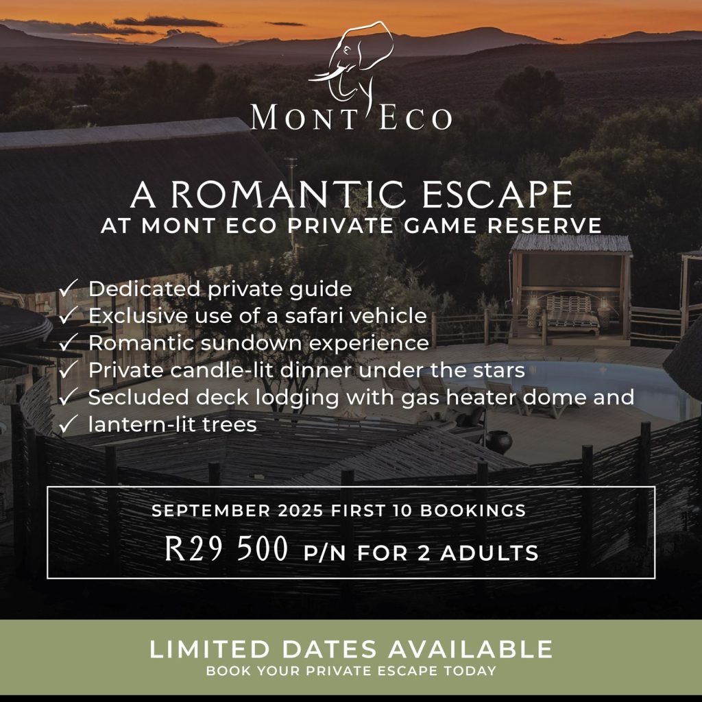 September draws couples to Mont Eco Private Game Reserve, an intimate sanctuary in the Klein Karoo. The reserve rests between sandstone ridges and acacia scrub. Dawn lands softly here; only the knock of francolins and the distant roar of a lion break the hush. Every stay is private. Every moment feels unhurried.